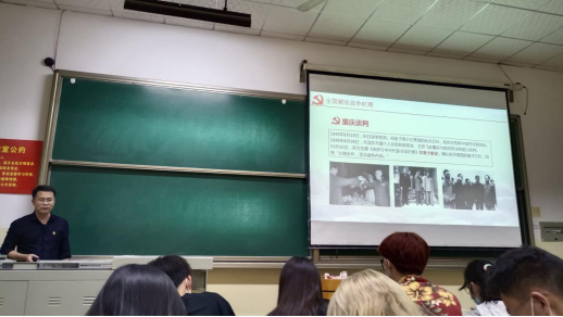 作为入党积极份子学习的第一堂党课,余博书记在课上用实例说明学习共产党历史的意义,从新民主主义革命时期、社会主义革命时期、改革开放和社会主义现代化建设时期,带领大家系统性地回顾中国共产党的百年历史和中国共产党领导全国人民取得的伟大成就。开阔同学们的视野,进一步提高思想觉悟,发扬中国共产党老一辈的优良革命精神。