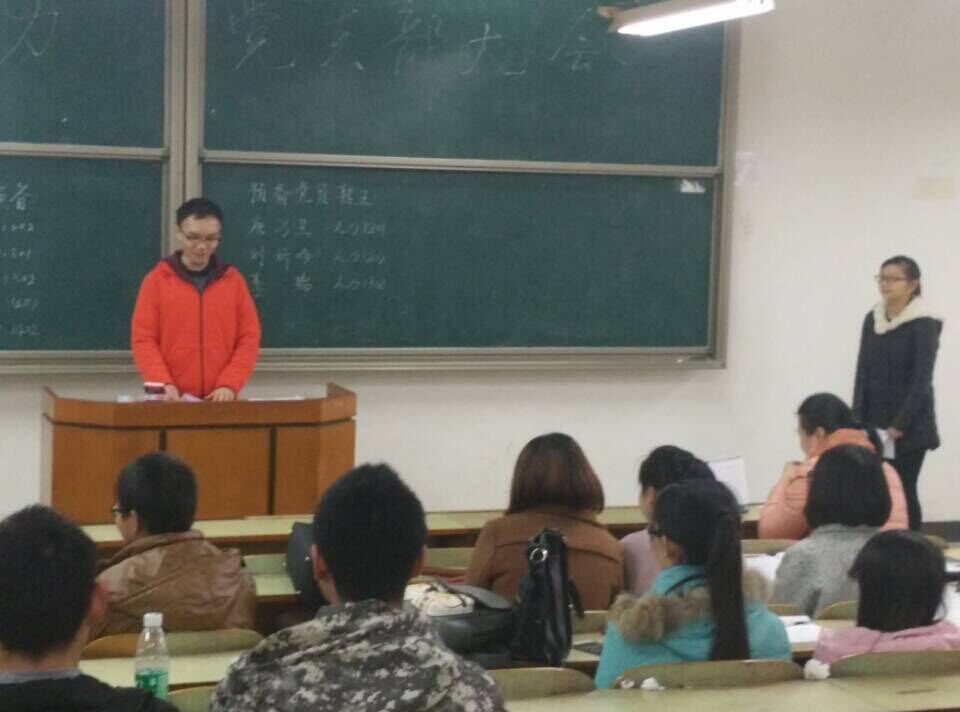 首先,由5名发展对象依次宣读入党誓词,然后汇报对党的认识,入党动机,本人履历,现实表现,家庭社会成员主要关系以及向党组织说明的其他问题.再由党小组和其入党介绍人介绍该同志的主要情况,并让熟悉的群众给予评价,最后正式党员进行投票表决。根据投票结果,我们5位发展对象都以全票通过,成功转为预备党员,成为党的新鲜血液。