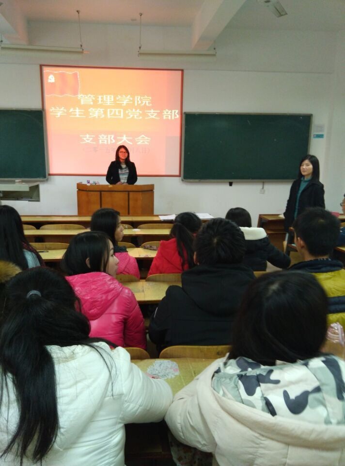 12月8日中午我院学生第四党支部于教学楼C201召开党支部大会,支部书记罗荃老师出席了会议。与会人员包括第四支部的正式党员,预备党员,发展对象与积极分子。