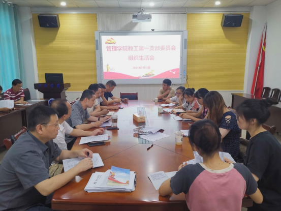 7月13日下午15:00,我院教工第一支部委员会在F104会议室开展了“学党史、悟思想、办实事、开新局”专题组织生活会。管理学院教工一支部书记李欣主持,我院教工党员一支部全体党员参加学习。
