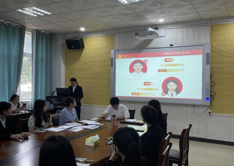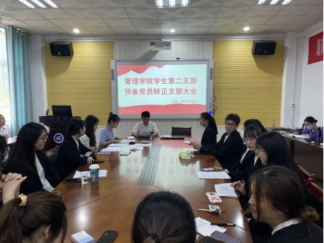 2023年5月20日中午12:10,管理学院学生第二支部委员会在新校区教学楼F104召开预备党员转正大会,讨论袁采玉等7名预备党员的转正问题。会议由支部书记罗蒙同志主持,共15名正式党员,21名预备党员参会。