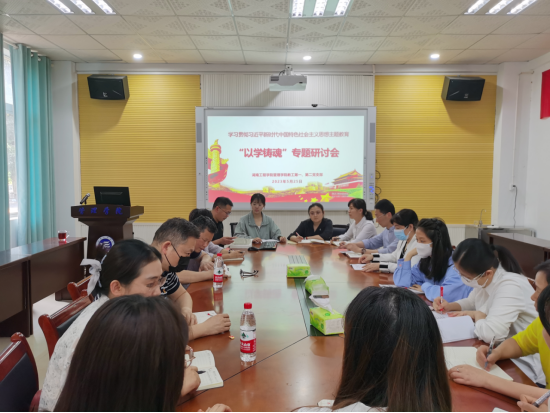 党委书记余博领学了《习近平著作选读》第一卷“人民对美好生活的向往,就是我们的奋斗目标”、“实现中华民族伟大复兴是中华民族近代以来最伟大的梦想”;党委副书记、院长徐运保领学了《习近平关于调查研究论述摘编》相关内容;党委委员、副院长潘立军领学了了习近平总书记关于全面依法治国有关重要论述、关于社会主义生态文明建设有关重要论述;党委委员、副院长张维梅领学了“大思政课”建设有关文件精神;党委副书记谭超领学了纪检监察、科学研究、统一战线工作等有关文件精神。集中学习后,与会人员围绕“以学铸魂”开展了专题研讨。