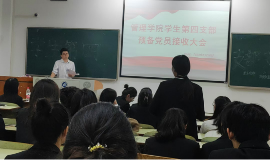 为进一步推进党的建设,保持党的先进性和纯洁性,增强党支部的凝聚力和战斗力。5月20日,管理学院学生第四党支部在新校区B-406召开预备党员接收支部大会。本次会议由支部书记罗蒙主持,管理学院学生第四党支部全体学生党员参加。