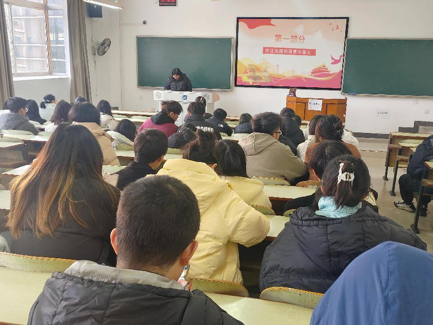 为深入贯彻落实党的二十届三中全会精神,进一步提高党员的法治意识和法治素养,2024年12月17日管理学院学生党支部在B406联合开展“明法于心,守法于行”主题党课。全体学生党员参加。