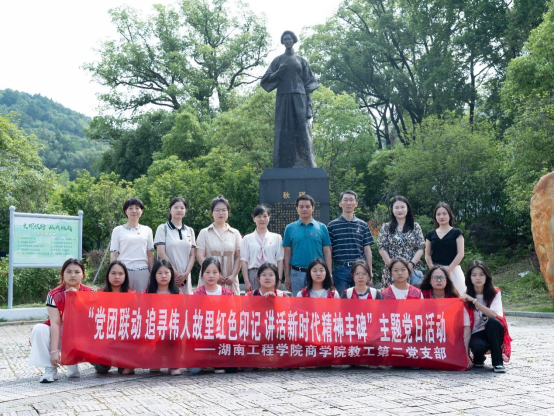 为弘扬爱国主义精神和革命传统,加强新时代廉洁文化建设,6月5日上午,商学院教工第二党支部赴秋瑾故居开展“党团联动 追寻伟人故里红色印记讲活新时代精神丰碑”主题党日活动。院党委书记徐运保、副书记谭超,支部党员教师及学生代表参加活动。