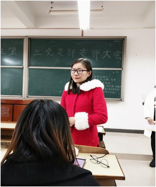 最后三名同学全票通过,同意按期转入中共正式党员。会上,单艳艳老师对新发展的正式党员提出了要求:作为共产党的一份子,要坚定信念、不断端正入党动机、树立良好的形象,在日常生活中和学习中要牢记自己的身份,争做表率,起到先锋模范作用,做事不能拈轻怕重,更不能只做表面工作,要诚实做人,认真做事。
