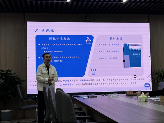11月11日下午,商学院举办首届青年教师教学创新大赛,9位新锐教师同台竞技,展现教学风采。本次大赛特邀湖南省课程思政教学竞赛一等奖获得者——湖南工商大学经济与贸易学院副教授罗曼怡、湖南科技大学法学与公共管理学院副教授王慧慧担任专家评委,通过“示范-实践-点评”的赛制,为青年教师搭建专业成长平台。大赛由副院长谭赛主持。