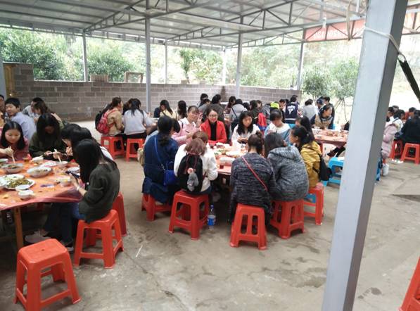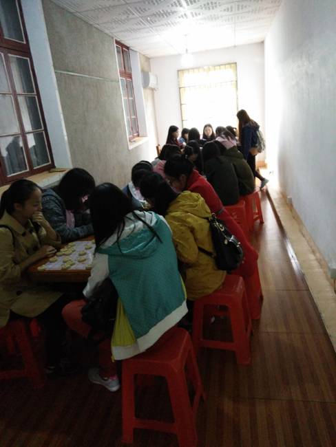 各个班干部们从找地址,买零食,买食材,组织同学集合,为我们同学奔波劳累,不辞辛苦。我们早早的集合坐上提前预订的公交车,一路上虽有些沉默但不乏激动,我们来到了湖南科技大学后街的一个农家乐,宽敞明亮的院子,虽简陋到干净整洁设施齐全的娱乐房。同学们刚到便迫不及待的进入自己喜爱的娱乐设施房。