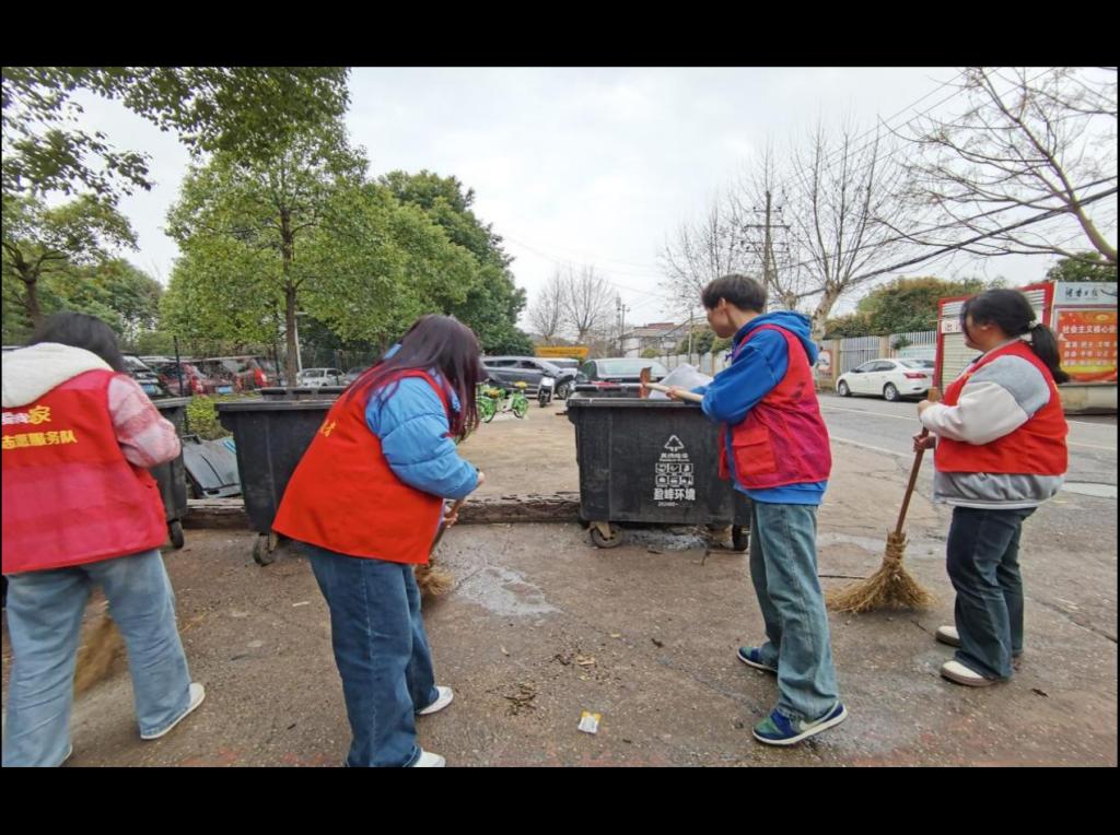 (图注:志愿者们正在打扫社区卫生)