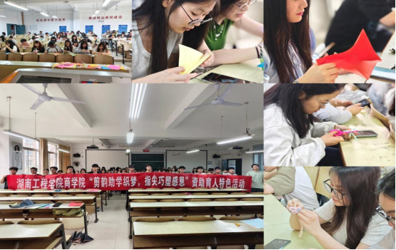为全面贯彻落实资助育人政策,创新“资助+育人”模式,以中华优秀传统文化浸润滋养引领大学生发展,4月26日,商学院学生联合组织资助中心携手各学生党支部在主校区D201、南校区一教109面向我院全体学生开展“剪韵助学织梦,指尖巧塑感恩”资助育人特色活动,吸引了100余名学生热情参与。