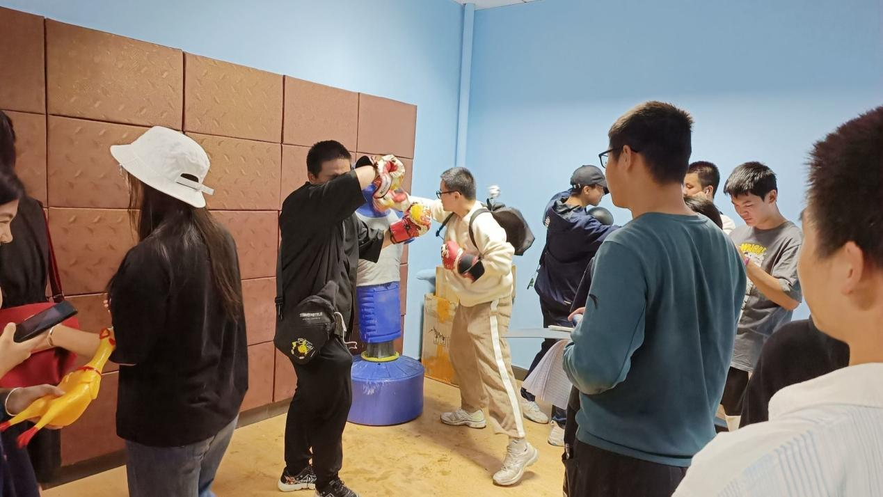图2:同学在心理宣泄室体验心理游戏