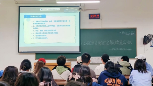 会议伊始,罗蒙老师介绍开展本次会议的目的及意义,并通过一个小问题引导大家了解心理委员与寝室联络员工作的内容与重要性。会议中,罗蒙老师带领同学们进行相关心理健康知识培训,并介绍学校关于心理健康教育方面的工作建设,为同学们解答困惑。会议最后,罗蒙老师对心理委员与寝室联络员的工作进行肯定与鼓励,并再次强调心理健康教育相关工作的重要性,在同学们的积极配合下,此次会议圆满完成。