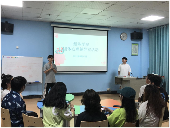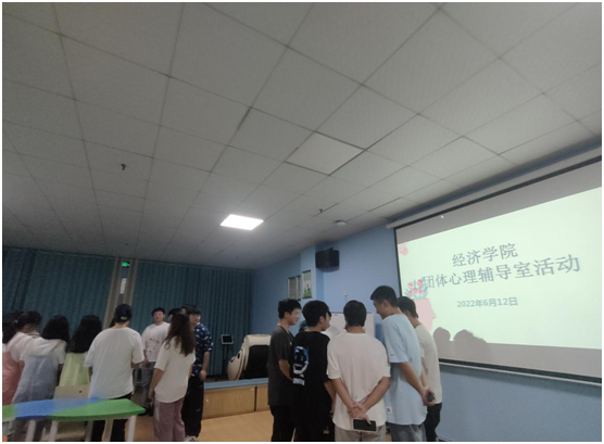 在活动开始之前,经济学院学生会主席方志军为大家播放了一段有关心理健康的视频,视频结束后同学们自由讨论并发表了自己的收获和感想。随后,方志军还请几位代表分享在活动之前就让同学们阅读的心理健康书籍的读后感,让他们介绍自己阅读过的其他心理书籍并分享感悟。在活动期间,还安排了别出心裁的游戏,“喊数抱团”的热身活动,因缘际会的“同心圆”,同学们沉浸在游戏中,气氛轻松又活跃。最后,方志军做了总结发言,团辅活动在轻松愉快的氛围中步入了尾声。