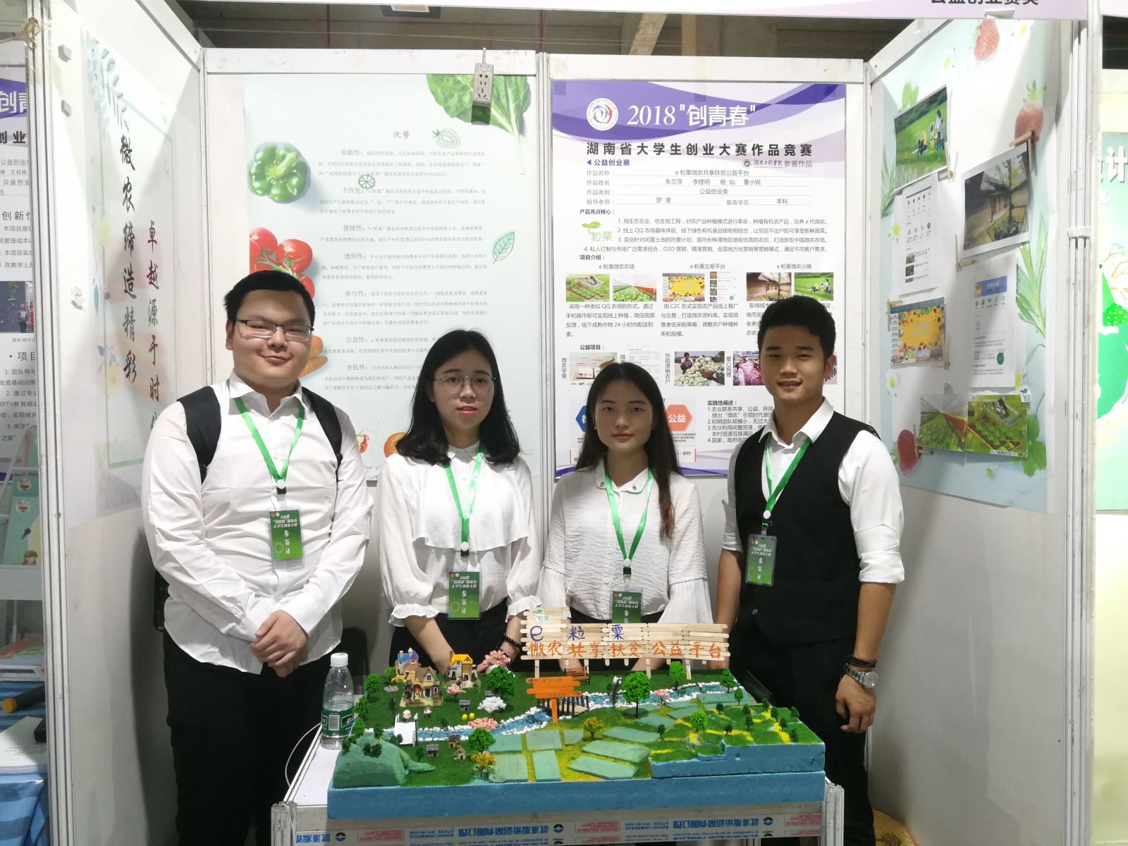 我院朱兰萍 李煌明 杨灿 董小锐的作品《“e粒粟”微农共享扶贫公益平台》(罗荃老师指导);辜佳豪 黄成 申家宁 严敏 沈静 《“源生”环保公益有限公司》(朱文明老师指导)经过公开展示、专家评审等比赛环节的激烈角逐,勇夺本次湖南省赛事的铜奖。