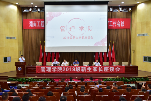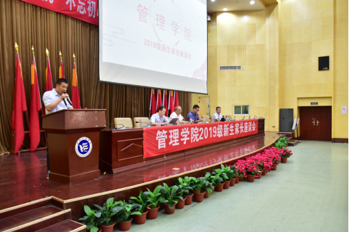 9月15日下午我院于新校区一报告厅召开2019级新生家长座谈会,与家长们共谈学生发展。管理学院院领导,新生班主任,学生辅导员以及2019级新生家长共同到场参会。