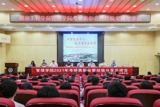 学院党委书记余博宣读《关于表彰管理学院2021年优秀考研毕业生的决定》;市场营销1701班徐诚同学代表考研优秀学生作交流发言;人力资源管理1801班孙瑞晶同学代表2022届考研学子作考研动员倡议;罗小青分享自身奋斗经历鼓励学弟学妹们要笃定目标,风雨兼程,在考研征途上实现人生新高度,将考研作为大学四年学业生涯的检验场。