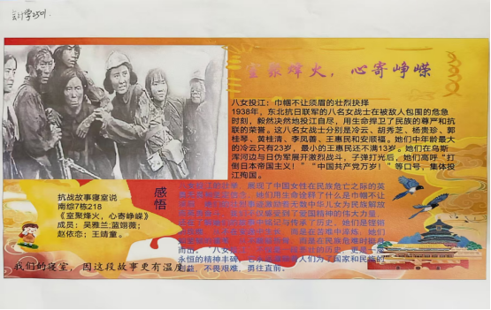 本次活动以寝室为单位,鼓励同学们通过采访长辈、查阅史料等方式,收集校园抗战事迹、平民抗战经历等鲜活故事,并以“寝室故事卡”形式呈现——卡片融合抗战元素设计,既有老照片的历史温度,又有寝室成员的感悟共鸣。活动启动以来,各寝室积极参与:有的寝室聚焦西南联大师生“以书桌为阵、以书本为器”的迁徙求学故事,还原战火中“停课不停学”的坚守;有的寝室深挖“八女投江”等英雄事迹,以青年视角诠释“巾帼不让须眉”的家国忠诚;还有的寝室梳理东北高校流亡师生的办学史,将“弦歌不辍”的精神与当代大学生的责任担当相联结。