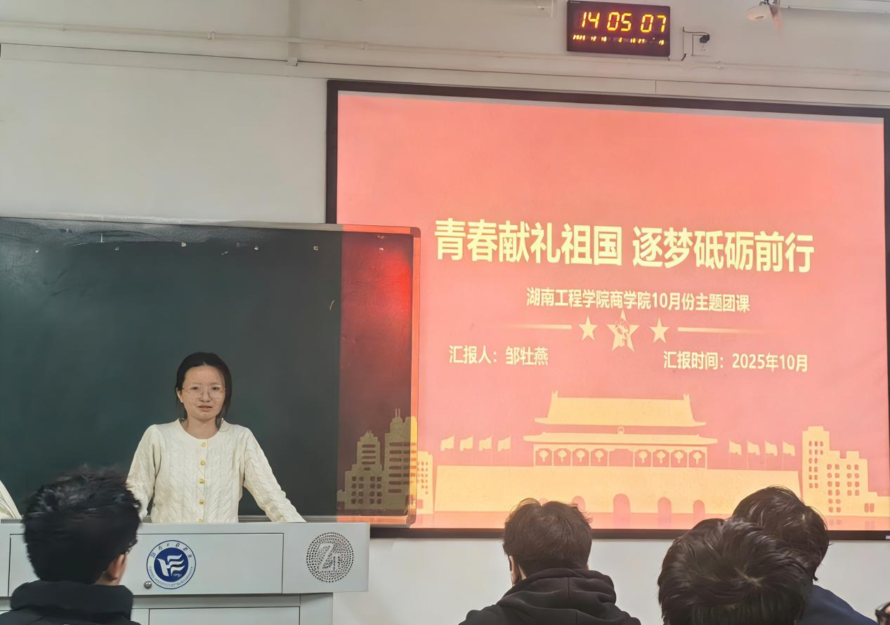为引领青年学子深刻领悟新时代的使命,激发奋进力量。商学院于10月23日下午在主教学楼A309教室举办“青春献礼祖国,逐梦砥砺前行”主题团课。本次团课由商学院团委书记邹牡燕主讲,各班团员代表共同参与。