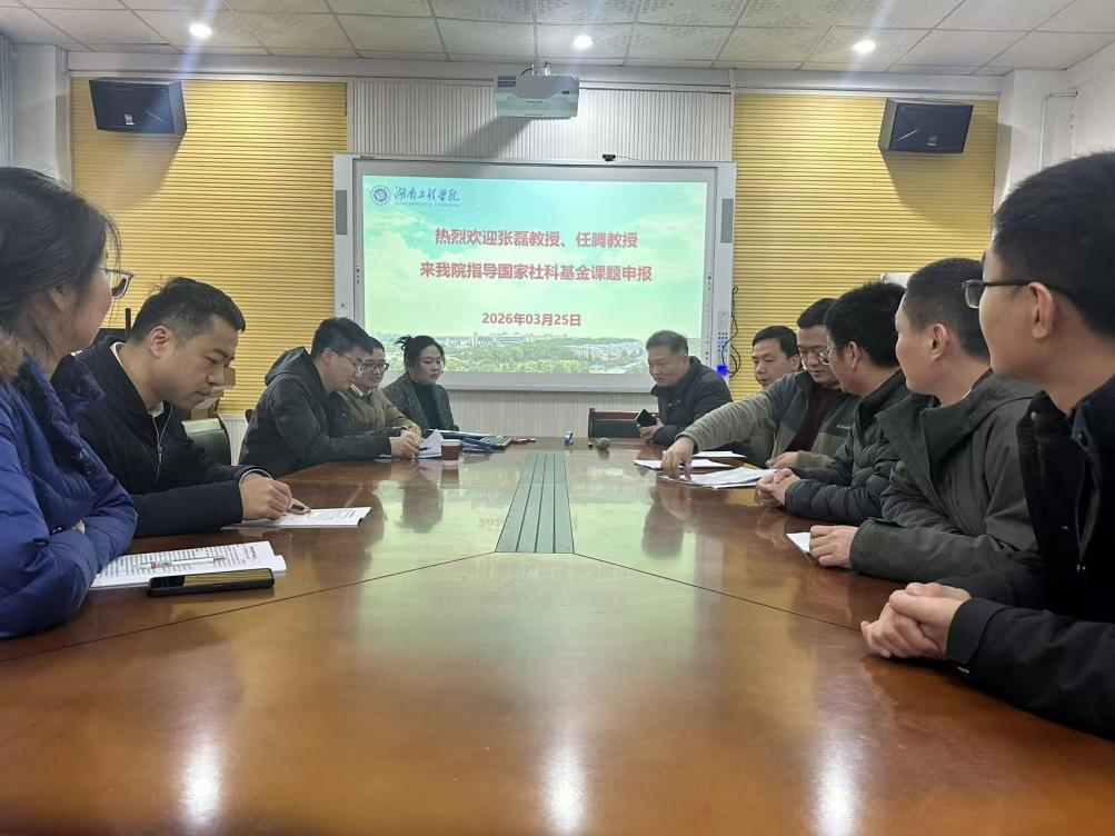 3月25日,商学院在F104会议室开展国家社科基金申报一对一打磨指导。这是学院今年针对课题申报组织的第三轮次专题指导,本次重点围绕课题论证活页进行逐本打磨、精准提升。活动特邀湘潭大学张磊教授、中南林业科技大学任腾教授两位青年教授到场指导,商学院副院长潘立军主持会议,今年计划申报国家社科基金、教育部人文社科课题的教师参加。