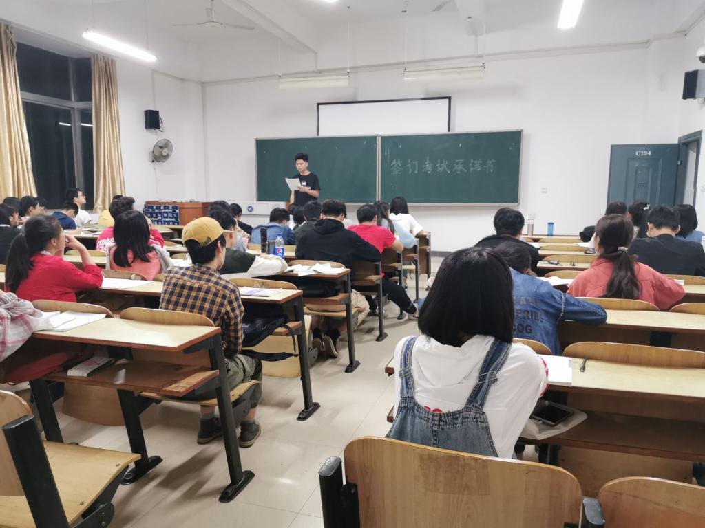 随着期末考试的临近,为了营造良好的考试氛围、净化考场环境、杜绝有失诚信的舞弊行为。管理学院于2019年5月22日开展诚信考试相关工作,并组织学生签订《诚信考试承诺书》。