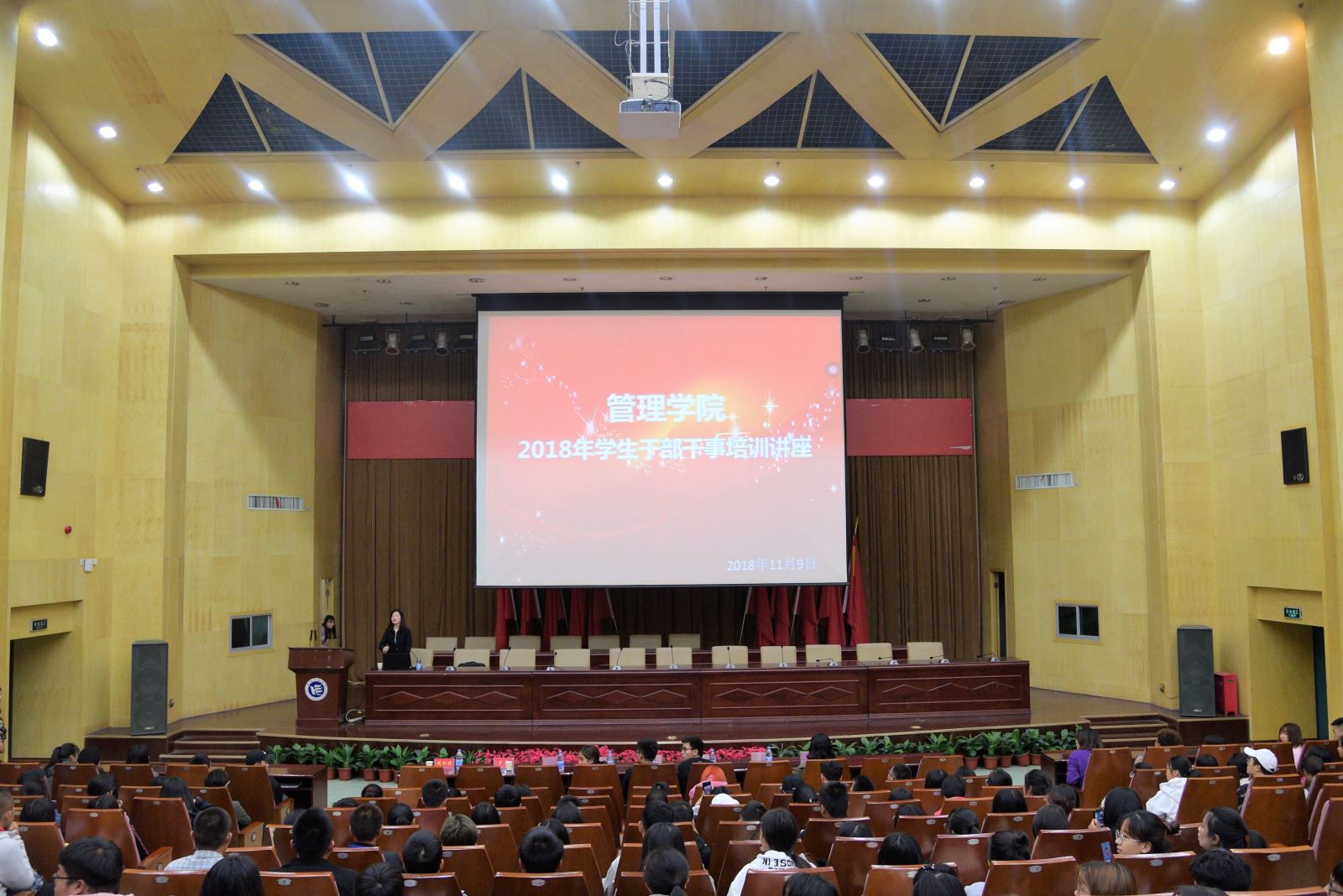 为了加强管理学院学生干部干事的基本素质与工作能力,11月9日晚上7点,管理学院在图书馆一报告厅召开了专题培训讲座,主讲嘉宾为管理学院党总支副书记钱祖煜、学办主任罗荃,管理学院全体学生会干部干事、各班班长和学习委员参加了此次培训。