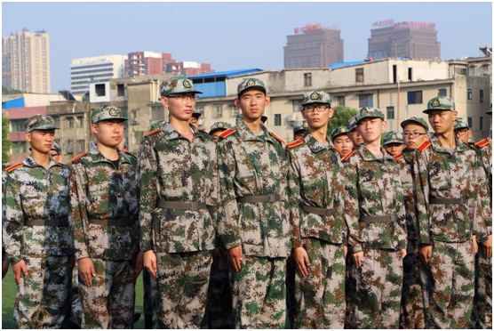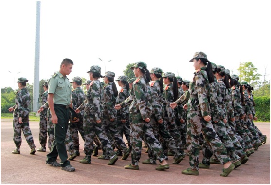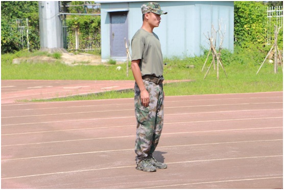 嘹亮的口号,激昂的歌声,整齐划一的动作,使体育馆顿时变得生龙活虎起来。入学的新生们换上迷彩服装穿梭在校园里,远远望去,犹如一道道跳跃着的音符。烈日当头,他们排着整齐的队列,迈着坚实的步伐,喊着嘹亮的口号,唱着雄壮的军歌。虽然军训生活是艰苦的,但再苦的生活也掩饰不住青春飞扬。站军姿、稍息、立正、齐步走、向右转,一句句嘹亮的口号鼓舞着他们前进,尽管很累,但是他们坚持着,在坚持的路上不仅培养了他们吃苦耐劳的精神,磨练他们坚强的意志,同时深深感受了团结就是力量。
