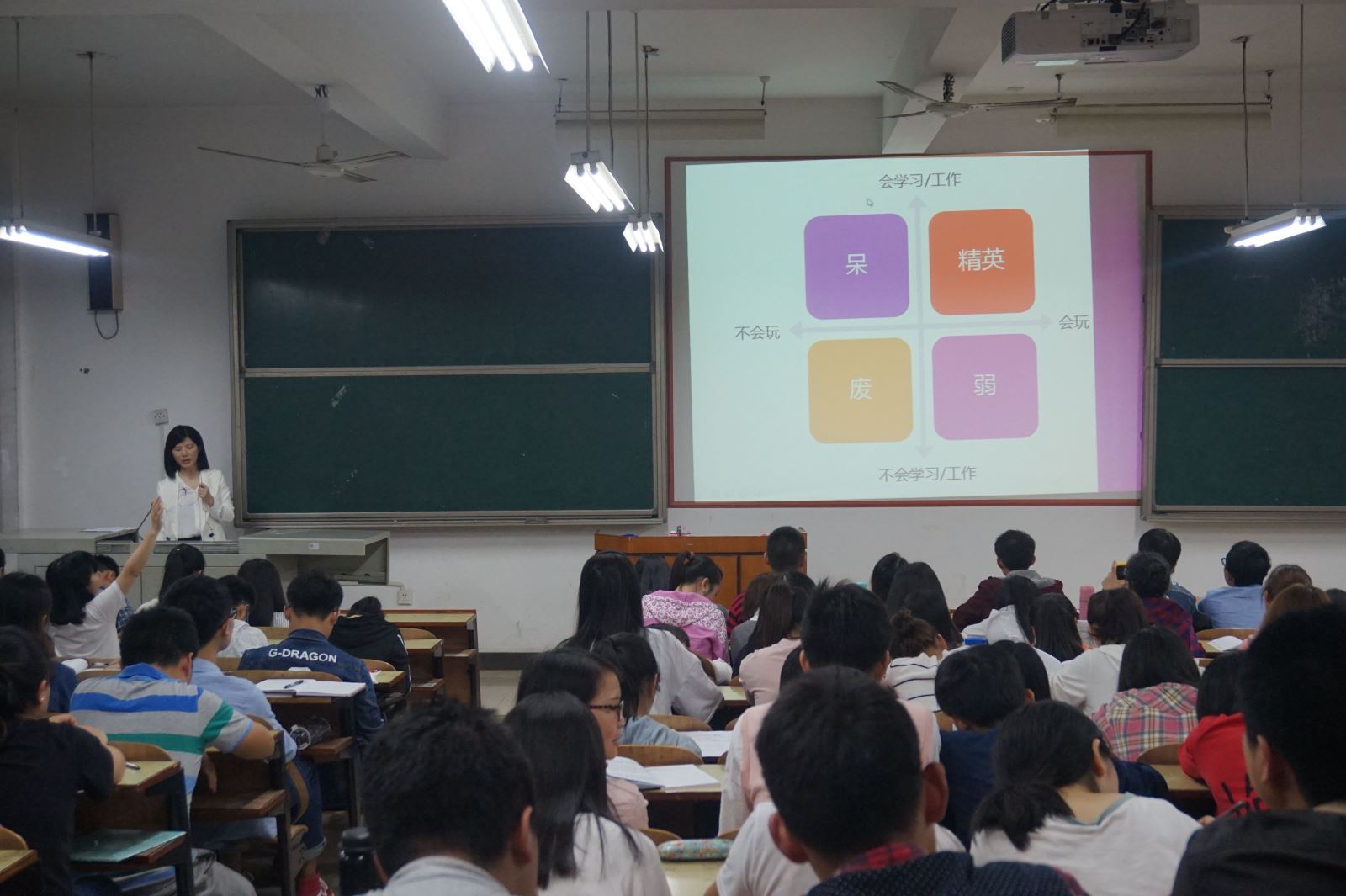 此次讲座具体围绕学生干部的“工作策略与艺术”、 “学业规划”、“个人定位”、“决策”、“自我管理” 这五个方面来分析大学生如何在“工作和学业”上合理地分配时间?如何科学地制定职业生涯规划?