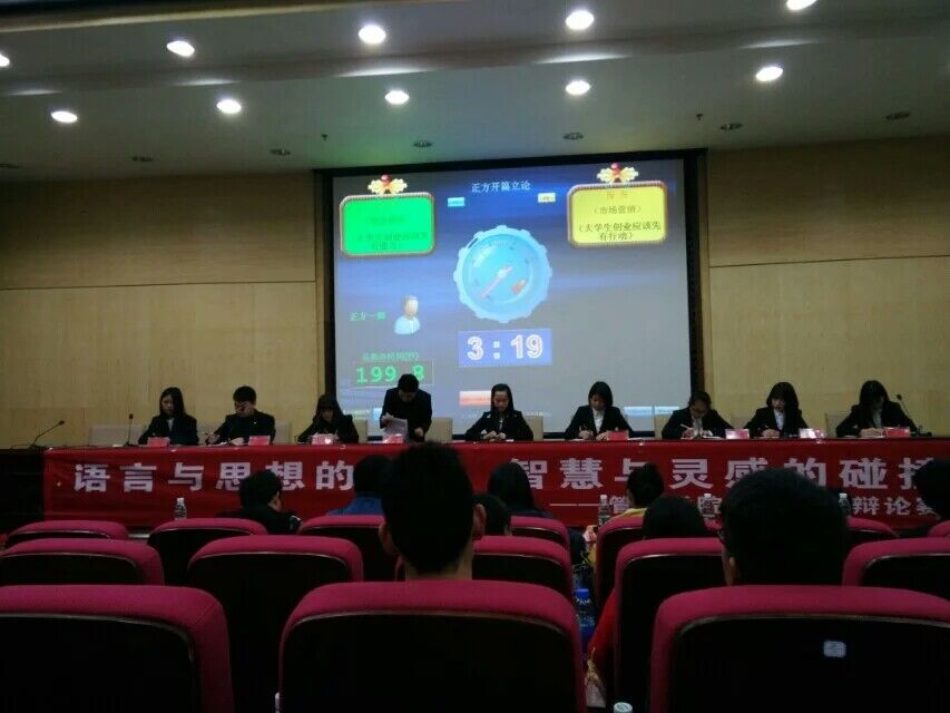 语言与思想的交锋,智慧与灵感的碰撞。3月22日晚上7点整,管理学院15级新生辩论赛总决赛在图书馆第二报告厅激情开战。本次比赛,特邀了管理学院学办主任罗荃老师,校辩论队长蒲桢明,管理学院辩论队队长王长雨为评委,同时也邀请了来自多个学院的辩论队成员为嘉宾。本次决赛包含两场赛事,分别决出冠亚季。