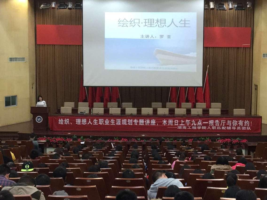 “人生就像射箭,要想人生不脱靶,那就提早给自己的人生做一份完美的规划。”11月15日上午,在新校区一报告厅举办了一场“绘织理想人生”职业生涯规划专题讲座,主讲老师为我校人职匹配职业生涯规划辅导员团队项目负责人罗荃,管理学院2015级全体新生及纺织服装学院、计算机学院部分学生前来聆听。