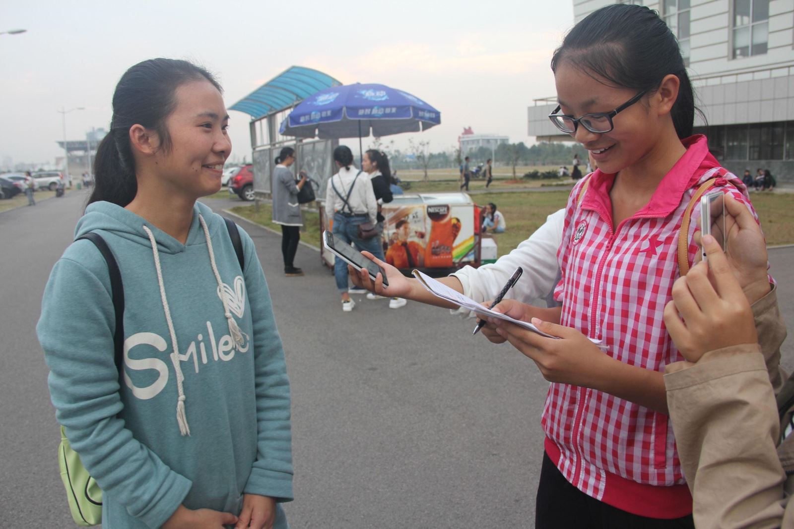 她开心地说当她看到有管院学生会成员为她加油的时候,她很感动。在最后得知,于瑞倩同学是校卫队的,她很倾慕校卫的兄弟之情,也会一直在校卫这个集体中走下去。