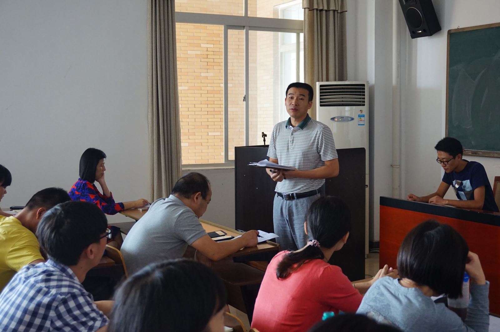 金色九月,天高气爽,管理学院即将迎来444名大一新生。为了全面部署迎新工作,给大一新生及家长营造良好、温馨的迎新氛围,展现管理学院高素质、优服务、好态度的精神风貌,9月14日中午十二点半,管理学院在G505顺利召开迎新动员大会。管理学院院党总支副书记钱祖煜、全体学办老师以及所有新生班主任出席了会议,会议由王长雨主持,全体学生会干部、朋辈心理辅导员和下班党员参加了动员大会。