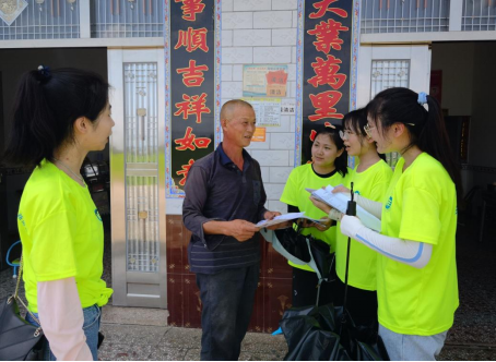 图为实践团对村民进行党史问卷调查