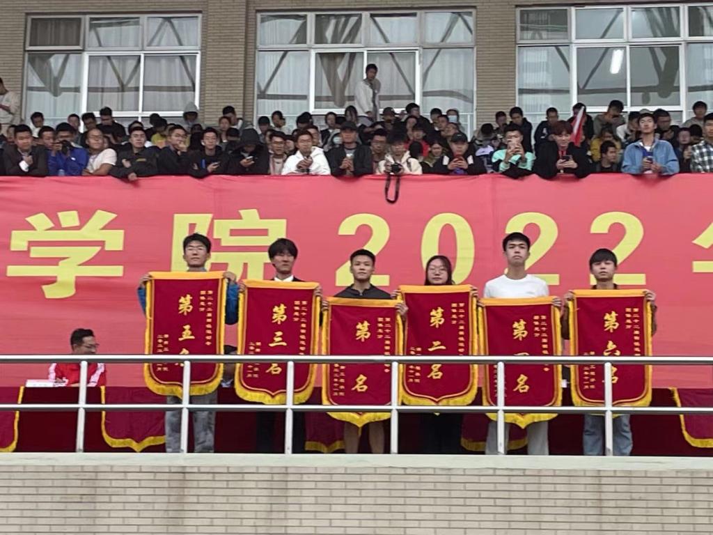 在这次运动会上,运动员奋勇拼搏,抱着永争第一的决心希望为院争得荣誉。看台上,我院学生摇旗呐喊,团结一心,用那饱含激情的呐喊为我院参赛运动员加油助威。场下,我院学生会院干以及志愿者默默为我院做出着贡献,维持秩序、带领运动员检录、打扫会场卫生、搀扶比赛归来的勇士,为他们倒水擦药、搬水搬桌,为我院运动健儿们的后期保障而默默流汗。团委学生会各部门紧密合作,团结努力,运动健儿奋勇拼搏,挥酒汗水,拉拉队团结一心,摇旗呐喊,使我校今年的运动会有序进行。