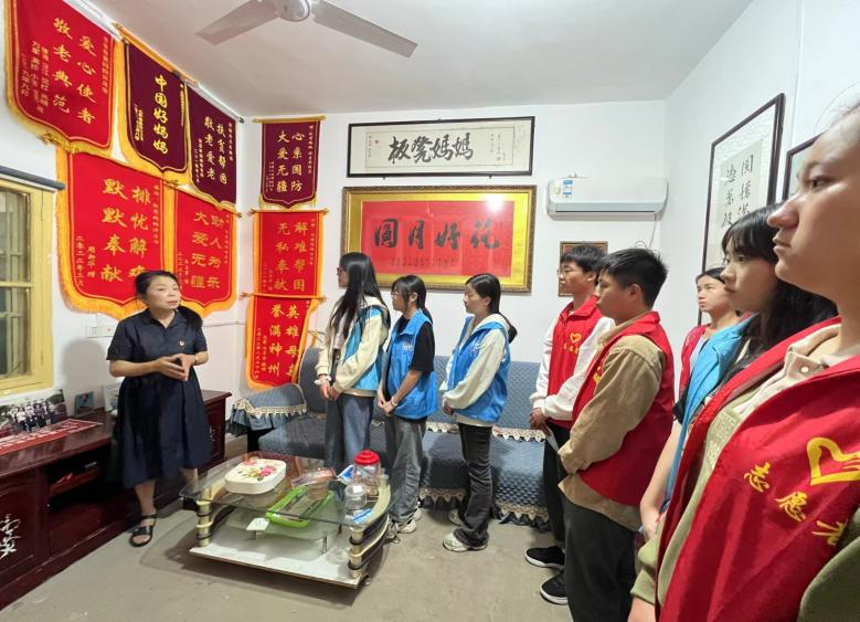 “板凳妈妈”许月华与湘潭市社会福利院原院长袁琪对党员教师和志愿者的到来表示热烈的欢迎和感激。在袁院长的带领下,大家参观了“板凳妈妈”许月华的荣誉墙,并给大家讲述了“板凳妈妈”的先进事迹。在“板凳妈妈”和丈夫都查出患上肺癌时,依然不顾亲朋好友的劝阻,毅然支持自己的儿子赖明智参军,走向最危险的前线,为国效力,无私奉献的精神感动了在场的所有人。