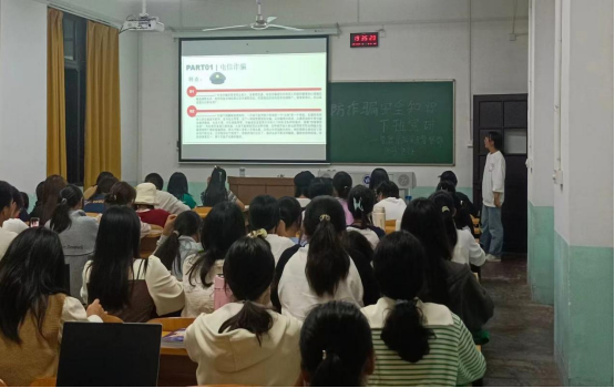 为广泛宣传电信网络诈骗,有效提高广大学生的反诈意识,守护学生的财产安全,10月23日和10月24日晚上19:00,管理学院学生联合组织安全督察部于各班晚自习教室召开了预防电信网络诈骗安全知识宣讲。本次宣讲面向管理学院23级全体学生。