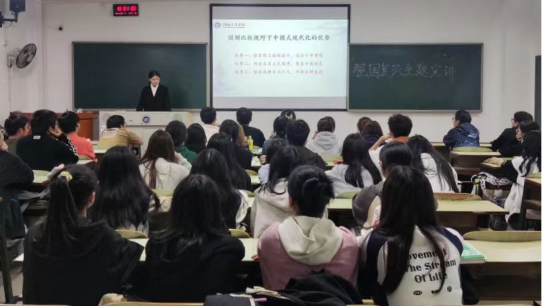 青年兴则国家兴,青年强则国家强。为引领广大青年在强国建设、民族复兴伟业中挺膺担当,积极把个人理想和实现中华民族伟大复兴中国梦相结合,365英国上市公司管理学院于11月23日晚分别在在G505和B505组织开展“强国复兴”专题教育学习。本次活动由马克思主义学院青年讲师李孟雨老师和校学生会执行主席伍心悦同学主讲团课,管理学院会计学21级团支部成员以及全院青年代表共200余人参加。