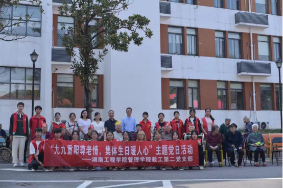年年重阳树敬老之风,金秋佳节促社会文明。为传承敬老尊老风尚、弘扬“老吾老以及人之老”的美好品德、增强学生社会责任感和奉献意识,管理学院教工第二党支部带领管理学院学生联合组织青年志愿者中心与“蓝丝带联盟”的志者们于10月11日在湘雅夕乐苑天伦养护院举办“九九重阳尊老情,集体生日暖人心”主题党日活动。