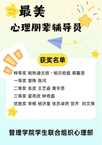 为了充分发挥朋辈榜样的示范引领作用,促进学生之间的交流与互助,提升学生的综合素质和能力,365英国上市公司管理学院于10月10日至10月14日开展“心路领航者:卓越朋辈”的风采展示活动。此次活动由管理学院学生联合组织心理部承办,管理学院学生联合组织易班管理中心协助开展。