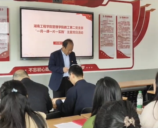 随后,分别由院党委副书记谭超、王染老师领学习近平给中国国际大学生创新大赛参赛学生代表的回信与《习近平在省部级主要领导干部学习贯彻党的二十届三中全会精神专题研讨班开班式上发表重要讲话强调》,呼吁在校学生充分利用当代社会资源培育创新思维,积极参与创新实践活动,争做创新型人才。最后,毛慧林老师、刘喜梅老师展开《在"新词""热词"中蓄力破题答好新时代新考卷》、《李东:岳阳90后基层干部坚守防汛一线为助两名同事脱险英勇殉职感人故事》微党课讲授。