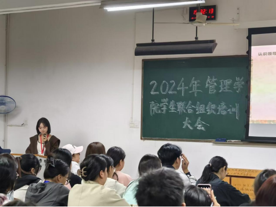 为进一步提升学生会干部的综合素质和工作能力,为组织的持续发展注入强劲动力,管理学院于11月14日19时在南校区第四教学楼203举行学生联合组织培训大会。此次会议分为主题培训与线下考试两部分,由学院团总支书记李林以及学联五位主席领讲,培训对象为学联各部门干部干事。