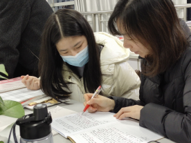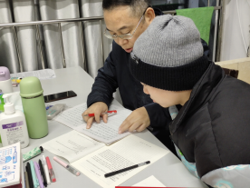 冬夜窗外寒风刺骨,自习室内的考研辅导现场氛围却异常火热,学子们求知如渴,老师们坐在同学们身旁,一笔一划地进行试卷分析,向同学们讲述写作时应注意的方方面面,老师们用英语例句向同学们做示范,轻松幽默却又一针见血地指出同学们出现的问题,赢得了同学们来自心底的欣赏,老师们甘于奉献的精神感染了考研学子们,自习室里的灯光暖暖的,照在书本上,也照进了同学们的心田。
