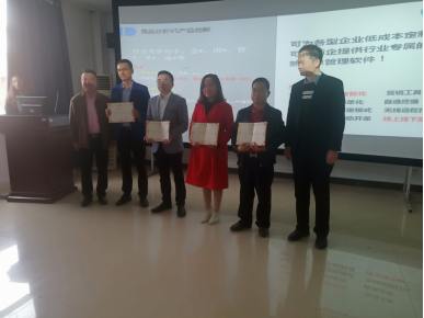 最后是颁证环节,由管理学院副院长潘立军和管理学院副书记张宏为四位发言人颁发《创业导师》聘书,并合影。