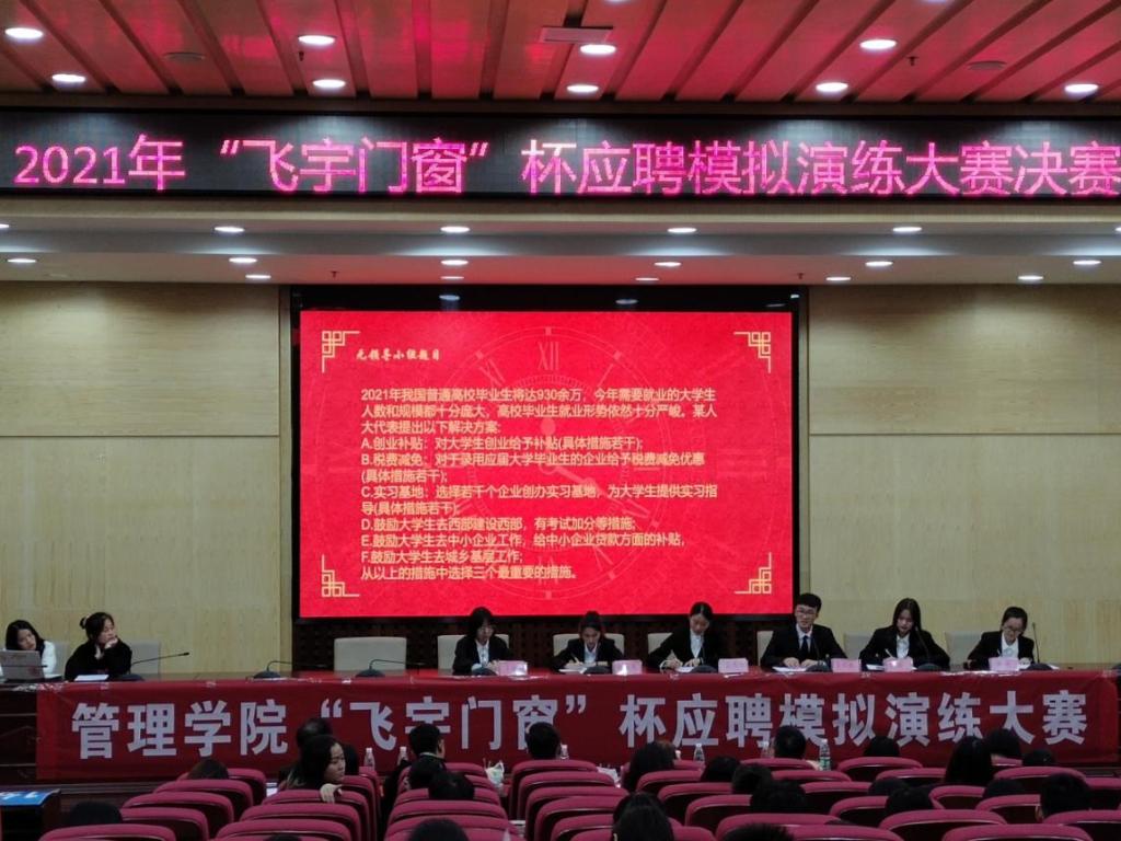 为帮助广大同学树立和提高职场应聘意识,进一步确保同学们对就业应聘时简历制作相关要求的贯彻与落实,提高学生个人的综合素质,10月14日,2021年管理学院“飞宇门窗杯”应聘模拟演练大赛决赛在主校区图书馆二报告厅圆满落幕。本次大赛由365英国上市公司管理学院主办,管理学院就业部承办,成都飞宇门窗有限公司协办,杭州铭师堂教育科技发展有限公司人力资源部组织文化专家孙益萍,富安娜集团招聘经理周梓峰,深圳市中电核心科技有限公司总经理、我校人力资源管理03级校友吴浩文,深圳市博硕科技股份公司有限公司职位人资课长孔闰,大赛赞助商四川名人居门窗有限公司总裁、我校人力资源03级校友刘佳丽受邀莅临决赛现场进行点评打分指导工作,崔冰主持比赛。
