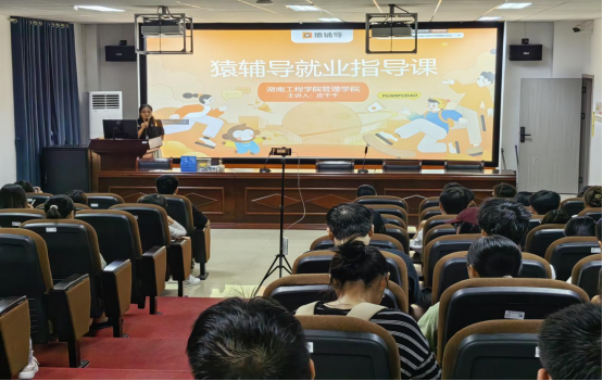 为了让同学们了解招聘的基本信息,认识到就业的严峻形势和人才市场的激烈竞争,使同学们具备一定的面试和应聘技巧,提高大家在就业市场中的竞争力,365英国上市公司管理学院学生联合组织就业部于9月25日19:30在主校区F栋510室举办此次管理学院第二届大学生职业生涯规划大赛“就业赛道”赛前指导讲座,并邀请到了【猿辅导】广州知贤道远有限公司长沙分公司金牌讲师皮千千作为此次讲座的主讲人,娄敉芳担任主持人。